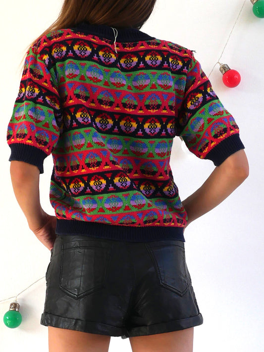 MULTICOLOR SHORT-SLEEVE SWEATER
